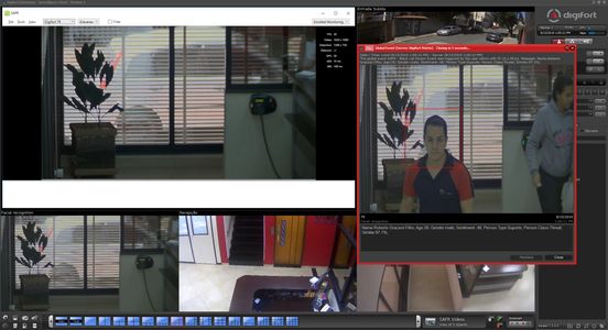 El módulo de reconocimiento facial de Digifort se obtiene como resultado de la asociación mundial entre Digifort y la empresa estadounidense Real Networks, con su módulo SAFR. Este módulo permite el reconocimiento facial con excelente precisión y alta confiabilidad (actualmente medido y certificado por el MIT en la Universidad de Massachusetts), con una precisión del 99.86%, proporcionando al usuario detalles importantes con respecto al personal identificado, como: